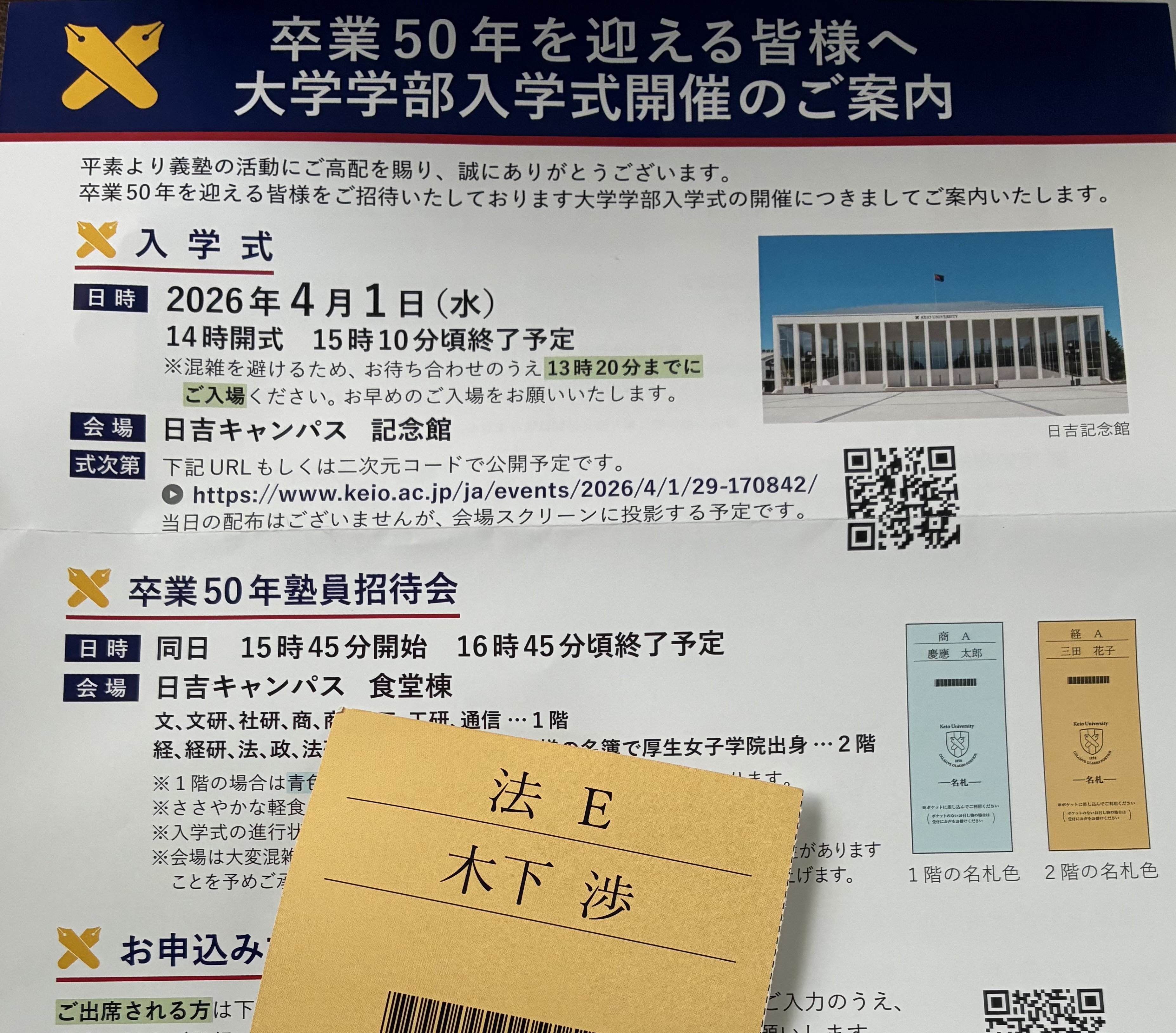 2026.04.01 卒業50年 入学式ご招待